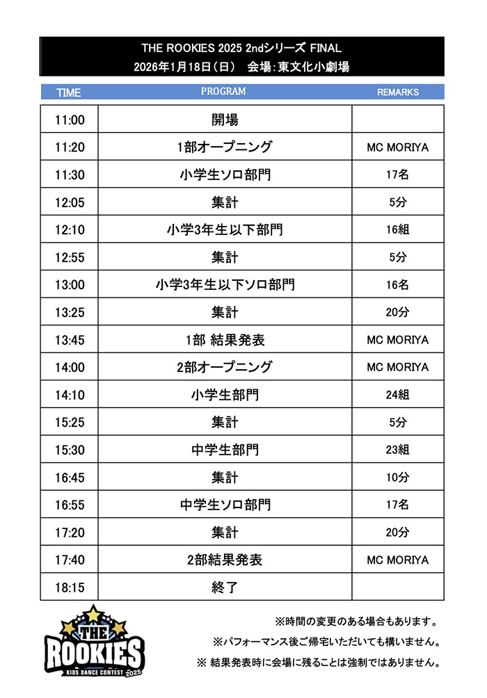 ①THE ROOKIESでファイナリストになったあとにスーパーキッズのファイナリストになるとTHE ROOKIESのファイナルには参加不可となります